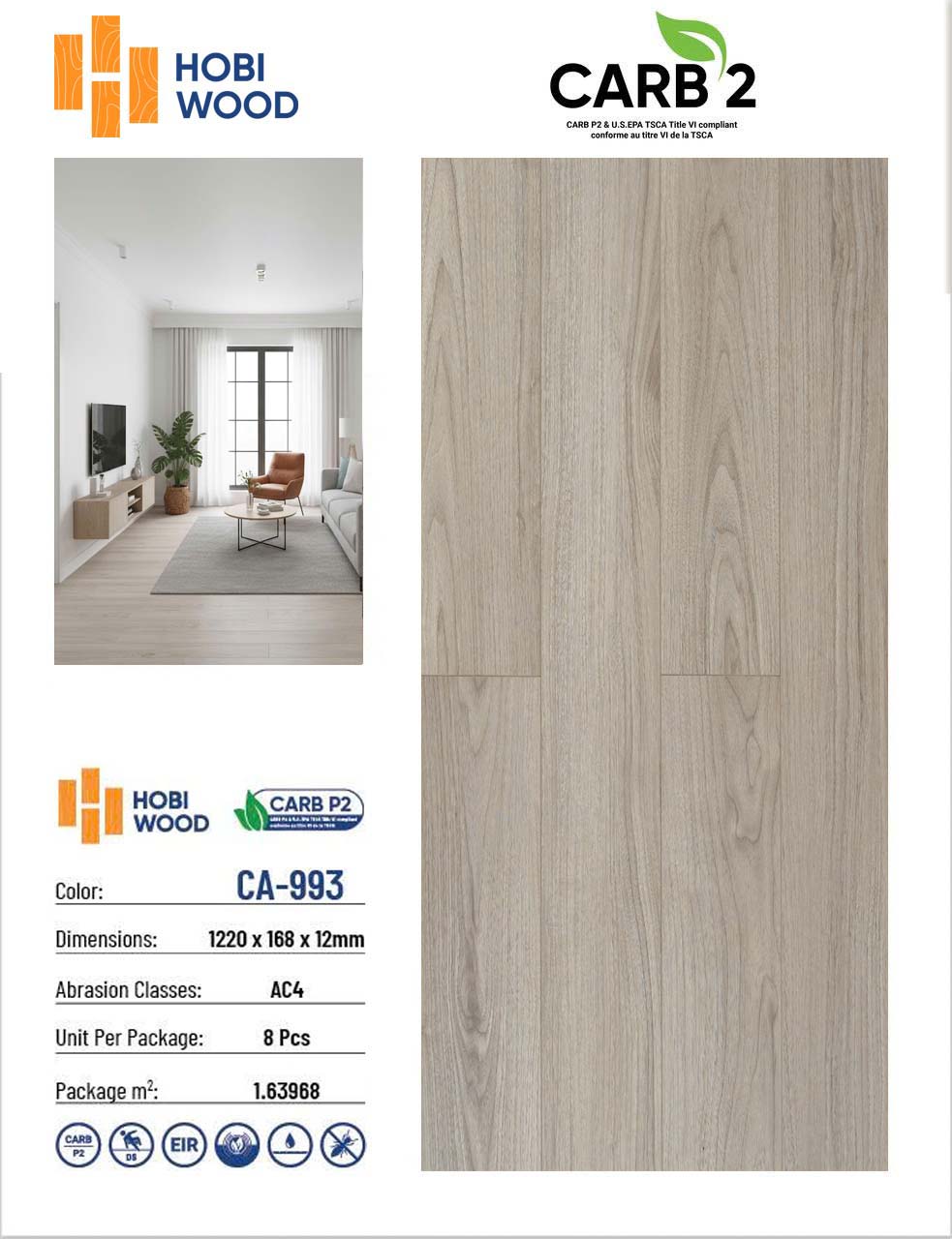 Trong xu hướng nội thất hiện đại, yếu tố an toàn cho sức khỏe ngày càng được đặt lên hàng đầu. Sàn gỗ Hobi Carb 12mm CA993 là đại diện tiêu biểu cho dòng sản phẩm cao cấp, không chỉ sở hữu vẻ đẹp sang trọng mà còn đáp ứng tiêu chuẩn kiểm soát khí thải Formaldehyde khắt khe nhất.