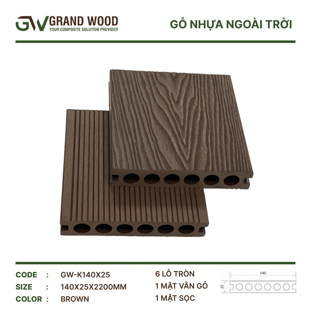 Sàn gỗ ngoài trời Grand Wood GW-K140T25 Brown