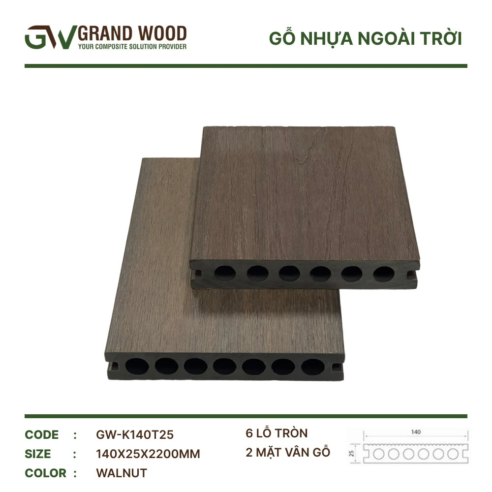 Sàn gỗ ngoài trời Grand Wood GW-K140T25 Walnut