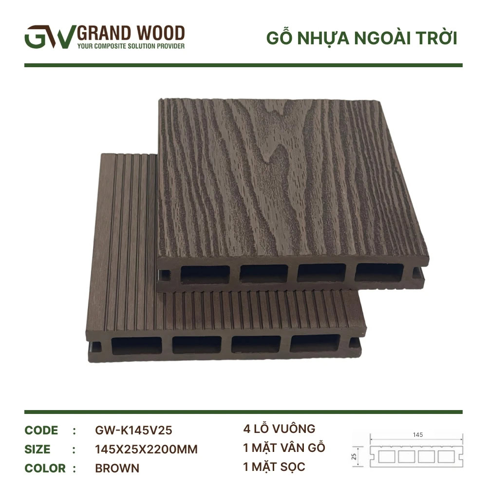 Sàn gỗ ngoài trời Grand Wood GW-K145V25 Brown
