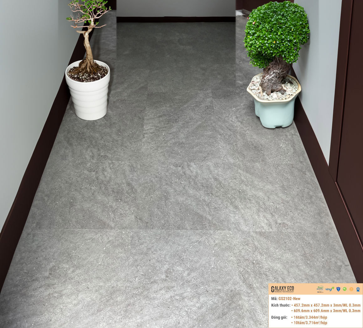 Sàn nhựa Galaxy Eco GS2102 New phù hợp lắp đặt tại nhiều không gian như phòng khách, phòng ngủ, văn phòng, quán cafe, trung tâm thương mại… tạo nên vẻ đẹp hiện đại, sang trọng cho ngôi nhà.