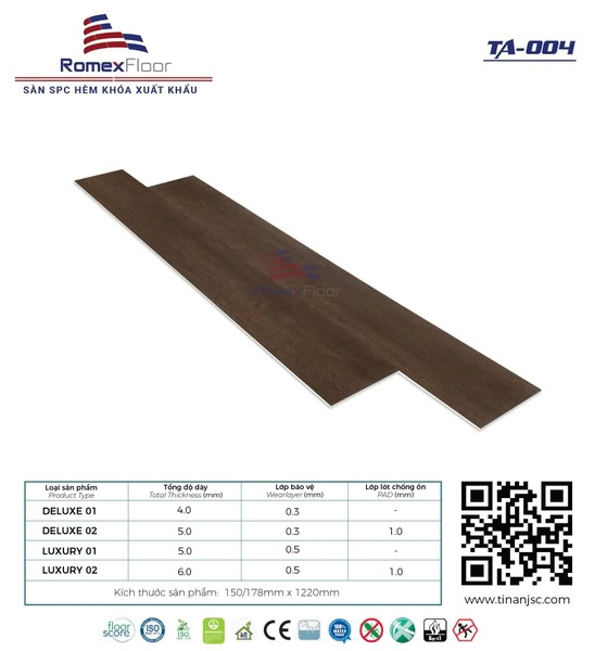 Thông tin bổ sung của Sàn nhựa hèm khóa Romex Floor TA004