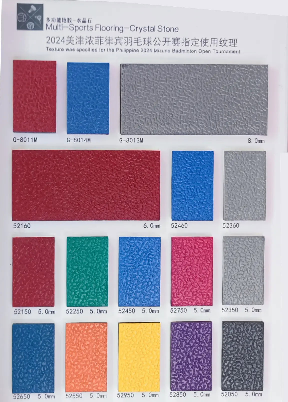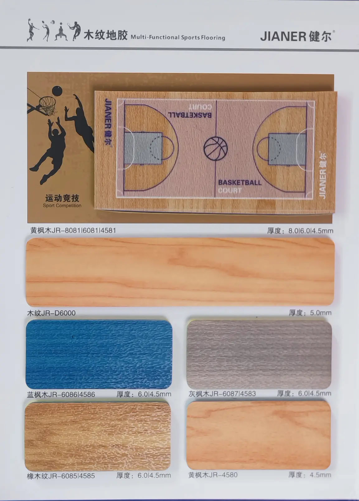 Với đa dạng về mẫu mã, độ dày và màu sắc, Jianer đáp ứng mọi nhu cầu từ sân thi đấu chuyên nghiệp đến không gian đa năng trong trường học và trung tâm thể thao.