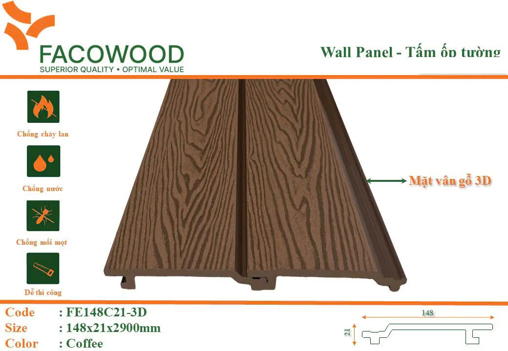 Đặc điểm của Tấm ốp Facowood FE148C21-3D Coffee