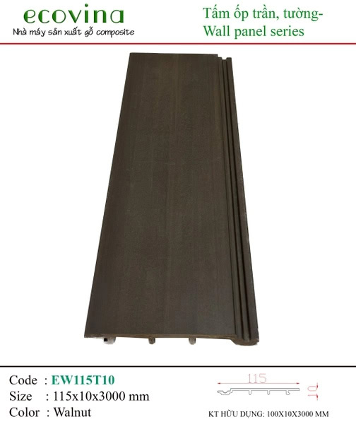 Tấm ốp gỗ nhựa Ecovina EW115T10 Walnut