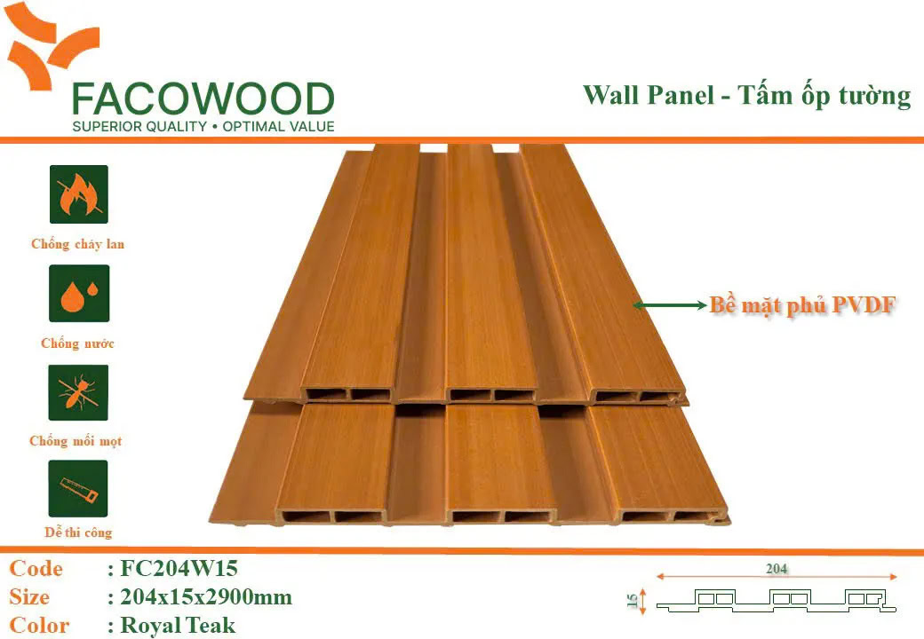 Đặc điểm của Tấm ốp lam sóng Facowood FC204W15 Royal Teak