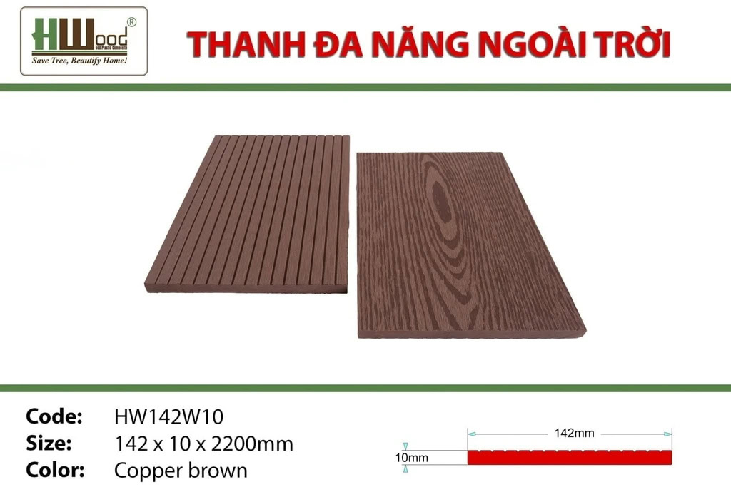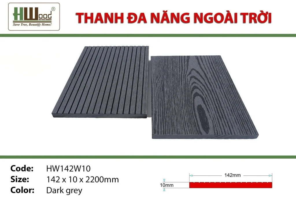 - Chất liệu: WPC (Wood Plastic Composite)