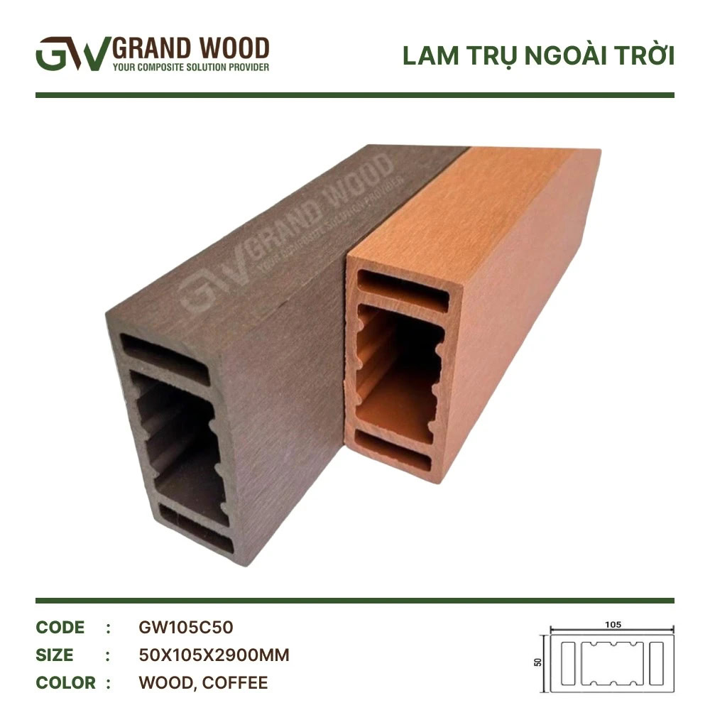 Đặc điểm của Thanh lam gỗ nhựa ngoài trời Grand Wood GW105C50