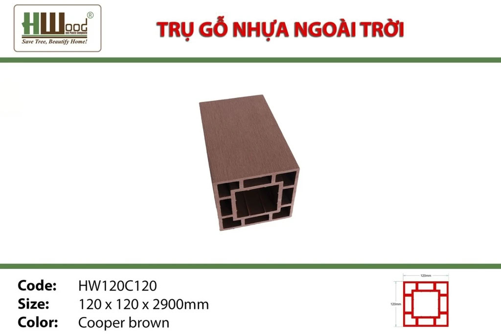 Thông tin bổ sung của Trụ gỗ nhựa ngoài trời Hwood HW120C120: