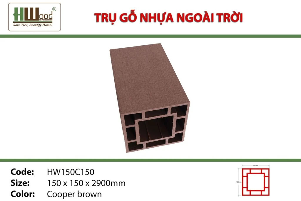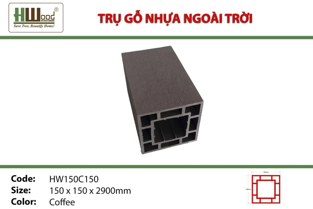 Trụ gỗ nhựa ngoài trời Hwood HW150C150
