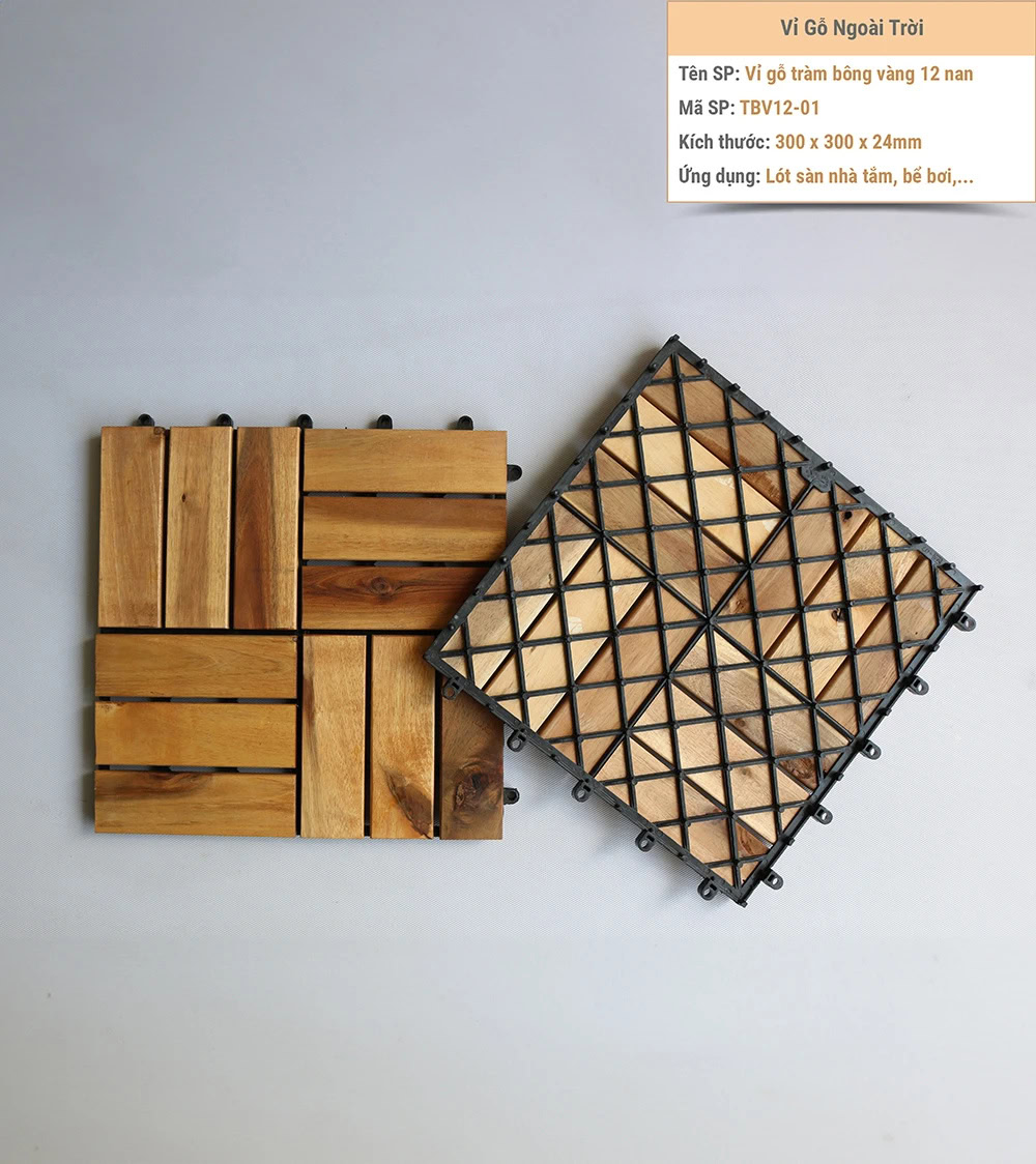 - Tên sản phẩm: Vỉ gỗ Tràm bông vàng 12 nan