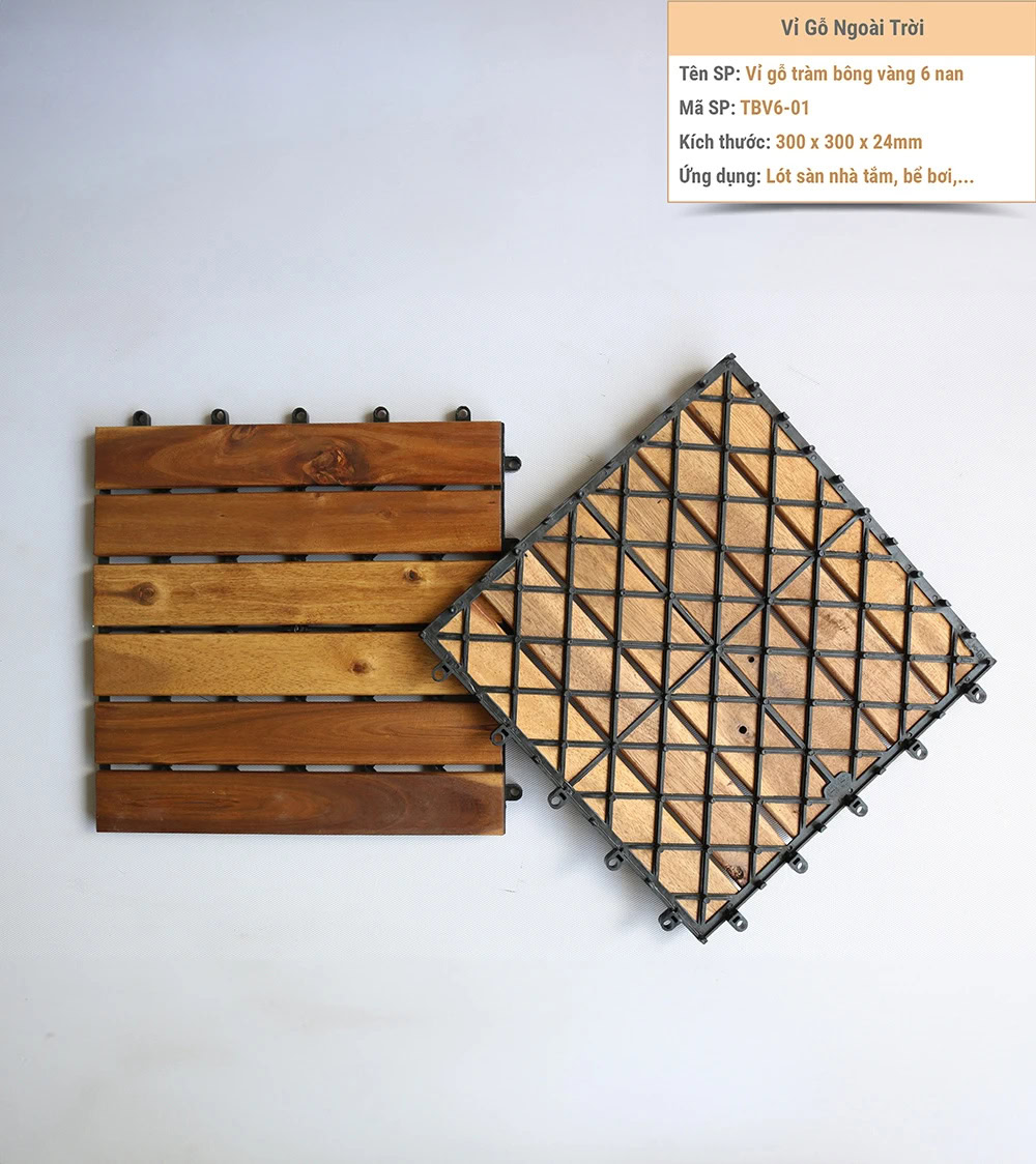 - Tên sản phẩm: Vỉ gỗ Tràm bông vàng 6 nan